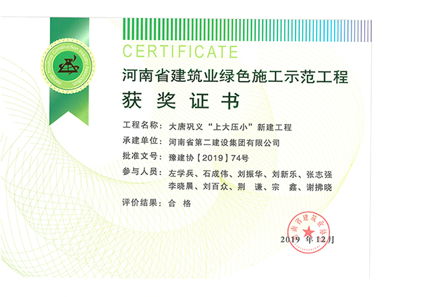 大唐巩义“上大压小”新建工程荣获河南省建筑业绿色施工示范工程