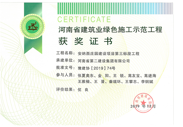 安纳西庄园建设项目第三标段工程荣获河南省建筑业绿色施工示范工程