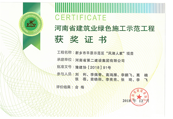 新乡市平原示范区“凤湖人家”项目荣获河南省建筑业绿色施工示范工程