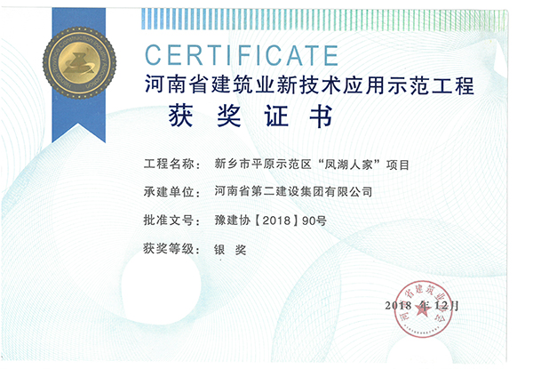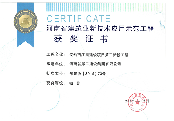 安纳西庄园建设项目第三标段工程荣获河南省新技术应用示范工程银奖
