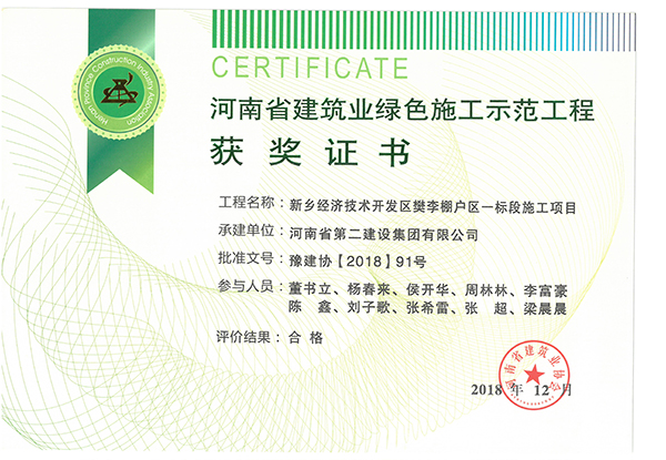 新乡经济及开发区樊李棚户区一标段施工项目荣获河南省建筑业绿色施工示范工程
