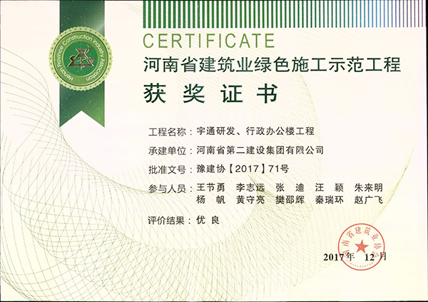 宇通研发、行政办公楼工程荣获河南省建筑业绿色施工示范工程